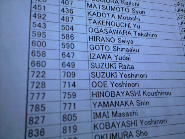 「パンッ」と空かした様な号砲とともにレーススタート。冬場のクリテリウムで高負荷に慣れさせただけあってスタート直後のハイペースには難なく付いて行く事が出来、最初の周の中盤までは先頭グループの見える位置で走る。やや苦しいが、身体は前に進めている感覚。少しオーバーペース気味だったので、スピードを落として、スムーズなライディングを心掛ける。30位くらいのラインで走っている状態で周りの選手とのリズムを取りながら進んでいく。が、レースが進むにつれて、腰の痛みが出てきた。それを意識してか、身体の動きにスムーズさがなくなり、バイクを前に進める事が非効率的になってきた。3周目後半に40位近辺まで落ちてしまい、気持ちは前に行きたいのだが、力がペダルに入っていかない。少しで詰められる差を詰められない悔しさを感じた。